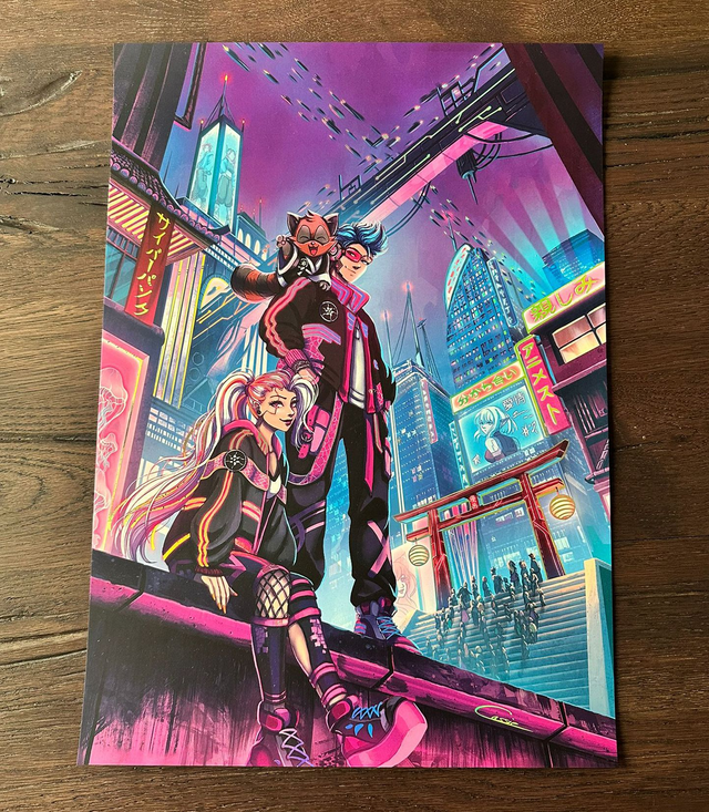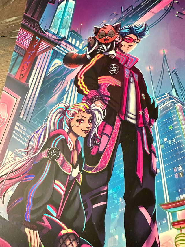 Impression sur papier blanc 400g, couché mat, avec dorures holographiques pour une finition luxueuse.
